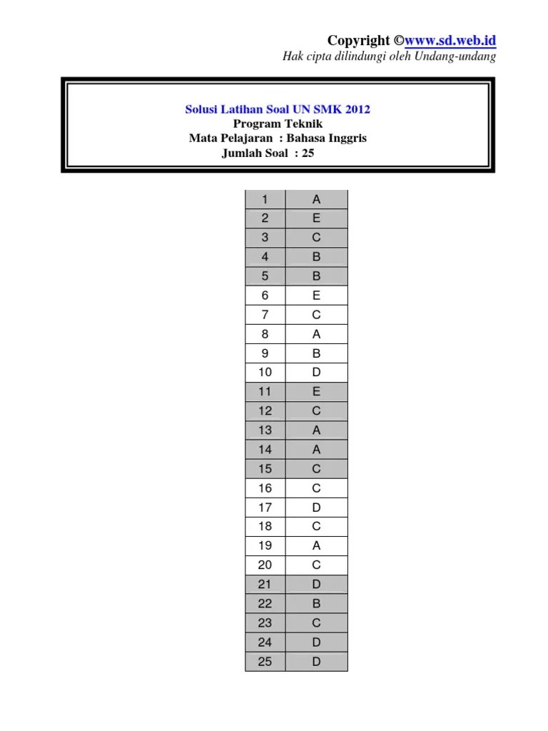 Kumpulan Soal Un Bahasa Inggris Smk 2012 / Soal Un Bahasa Inggris Smk 2012 Dengan - Aina mulyana sunday, february 02, 2020 ujian nasional .. Soal un 2012 matematika download file; Buku sakti kumpulan soal un bahasa indonesia dan inggris 2014. Buku detik detik un bahasa inggris smp mts 2011 2012. Contoh soal un sd 2012 mtkbag1 dan pembahasan. Nilah pembahasan soal dan jawaban latihan un dan unbk untuk smk pelajaran bahasa inggris semester genap.